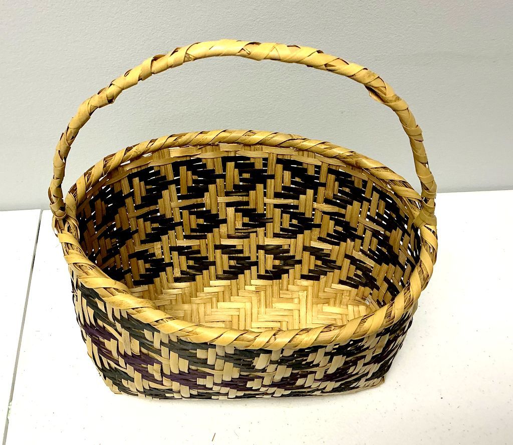 422 13"h., 10"w, Choctaw Hand Woven Cane Gathering Basket