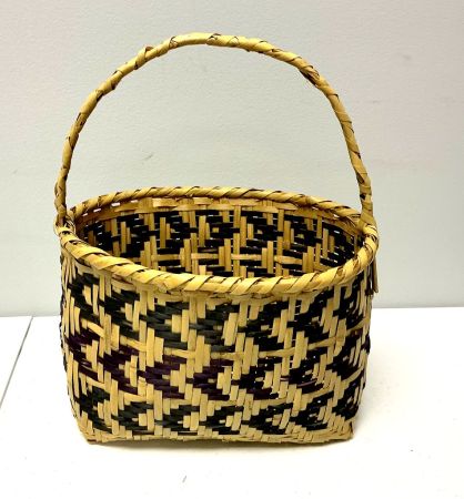 13"h., 10"w, Choctaw Hand Woven Cane Gathering Basket, rivercane, single handle, good condition. 13"h., 10"w, Choctaw Hand Woven Cane Gathering Basket, rivercane, single handle, good condition.