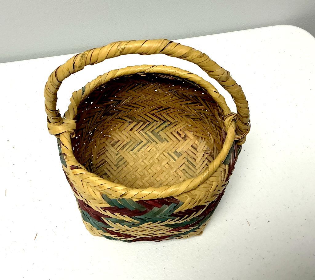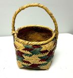 10"h., 7"w Choctaw Hand Woven Egg Basket, single handle, good condition. 10"h., 7"w Choctaw Hand Woven Egg Basket, single handle, good condition.