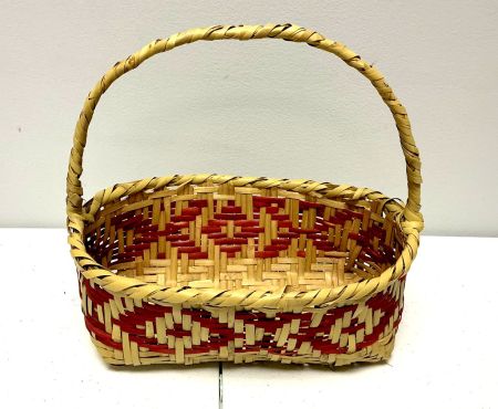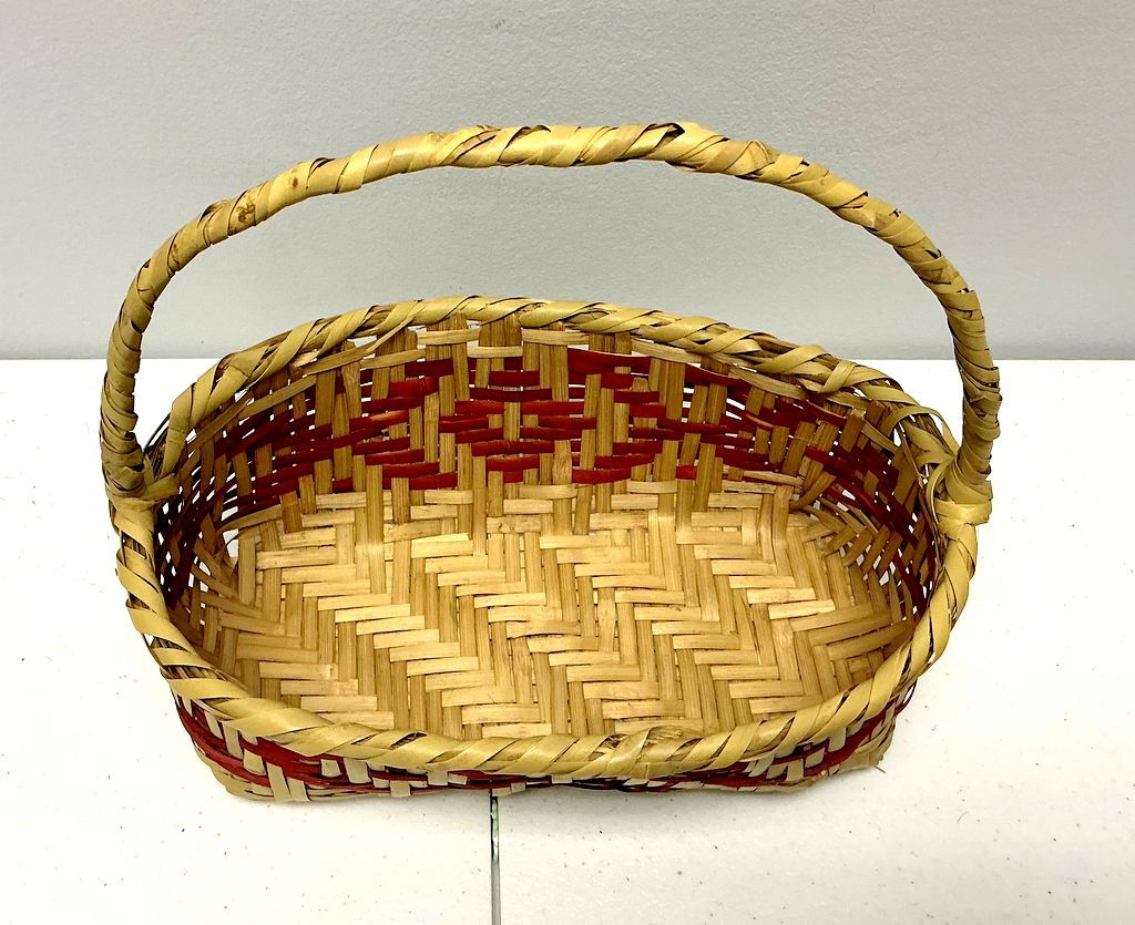 10"h., 10"w. Choctaw Hand Woven Gathering Basket, river cane, single handle, good condition. 10"h., 10"w. Choctaw Hand Woven Gathering Basket, river cane, single handle, good condition.