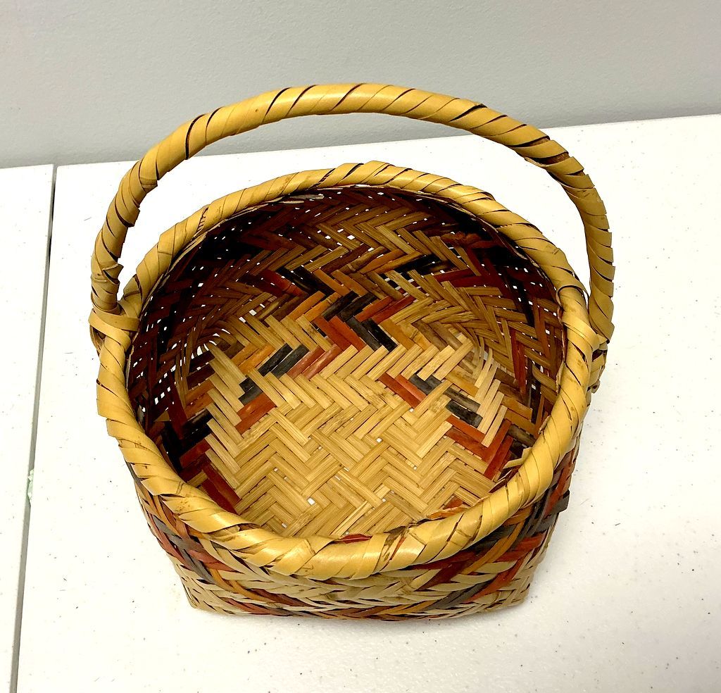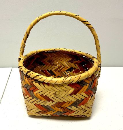 9"h., 8"w. Choctaw Hand Woven Egg Basket, single handle, rivercane, good condition. 9"h., 8"w. Choctaw Hand Woven Egg Basket, single handle, rivercane, good condition.