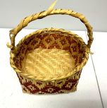 9 1/2"h., 8 1/2"w Choctaw Hand Woven Gathering Basket, single handle, rivercane, good condition. 9 1/2"h., 8 1/2"w Choctaw Hand Woven Gathering Basket, single handle, rivercane, good condition.