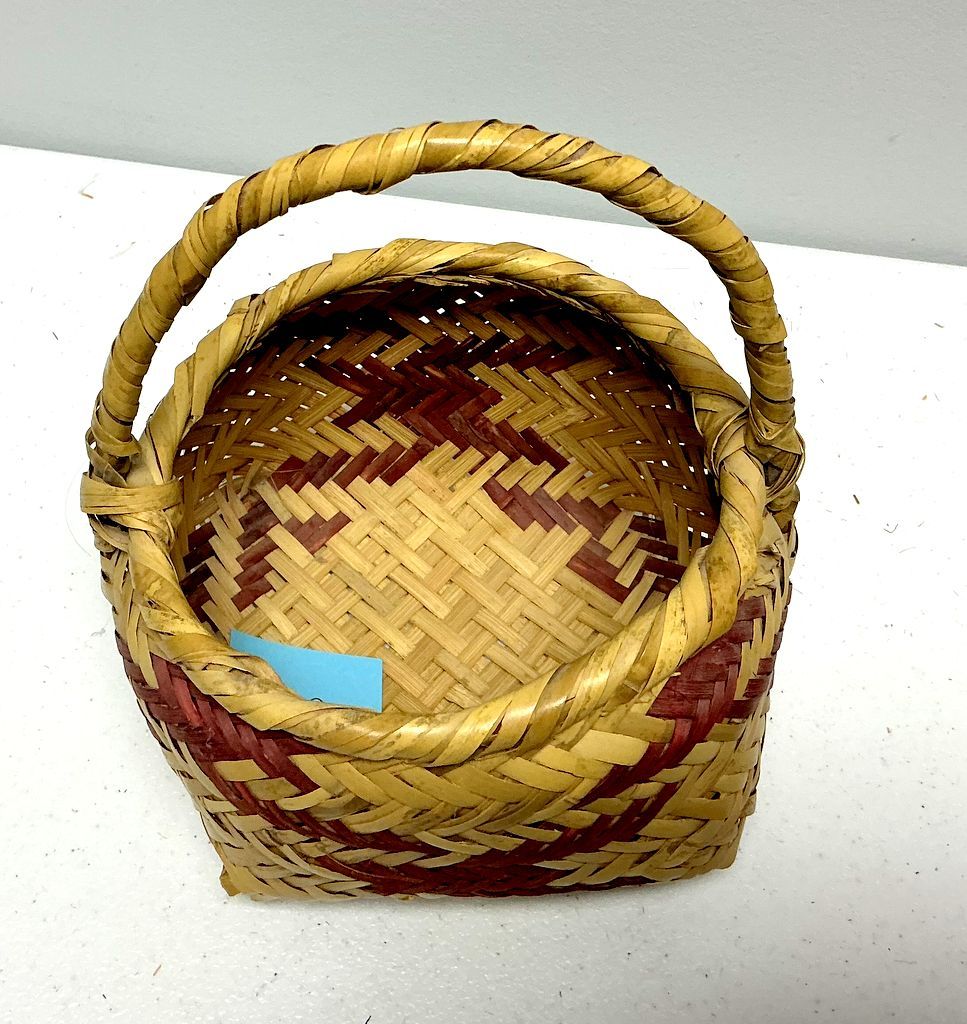 8 1/2"h., 7"w Choctaw Hand Woven Egg Basket, rivercane, single handle, good condition. 8 1/2"h., 7"w Choctaw Hand Woven Egg Basket, rivercane, single handle, good condition.
