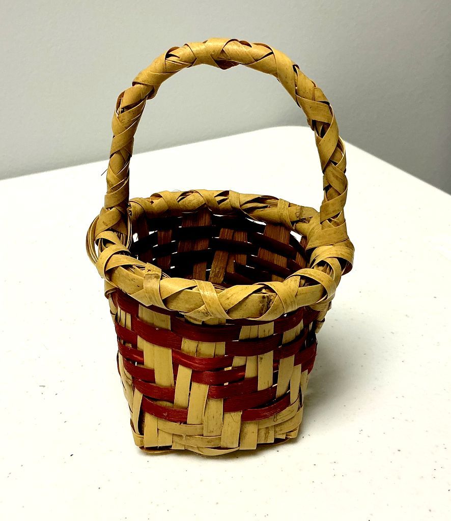 7"h., 4"w. Choctaw Hand Woven Small Cane Basket, single handle, rivercane, good condition. 7"h., 4"w. Choctaw Hand Woven Small Cane Basket, single handle, rivercane, good condition.
