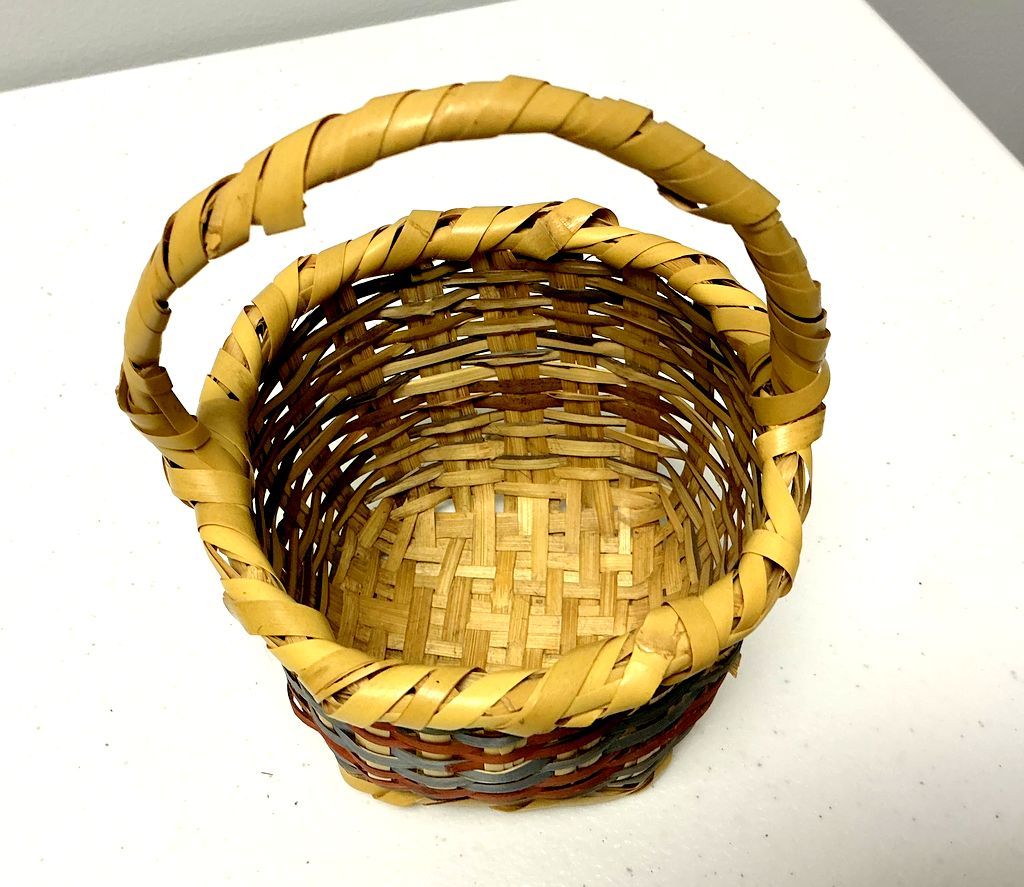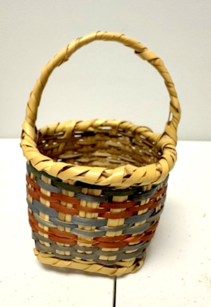 6 1/2"h., 4"w. Choctaw Hand Woven Small Cane Basket, single handle, rivercane, good condition. 6 1/2"h., 4"w. Choctaw Hand Woven Small Cane Basket, single handle, rivercane, good condition.