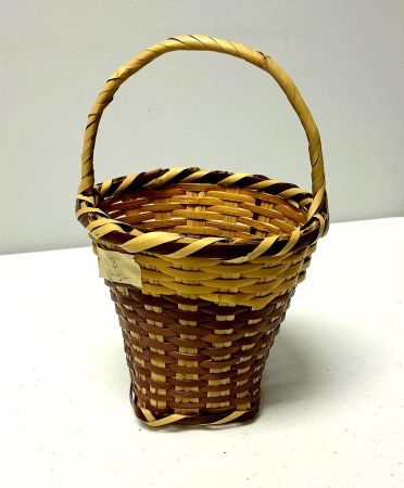 8"h., 5"w. Choctaw Hand Woven Small Cane Basket, rivercane, single handle, good condition. 8"h., 5"w. Choctaw Hand Woven Small Cane Basket, rivercane, single handle, good condition.