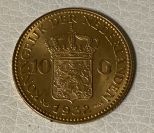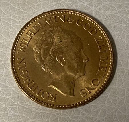 1932 10 Gulden Wilhelmina, Koningin Wilhelmina God be with us, Gold .900, dia. 22.5mm, 1.2mm, round. 1932 10 Gulden Wilhelmina, Koningin Wilhelmina God be with us, Gold .900, dia. 22.5mm, 1.2mm, round.