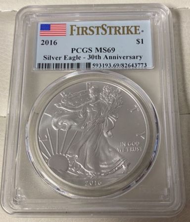 2016 $1 Silver American Eagle, 30th Anniversary, first strike. 2016 $1 Silver American Eagle, 30th Anniversary, first strike.
