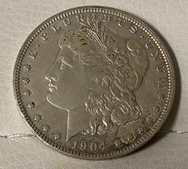 1904 Morgan Silver Dollar, mint mark O, New Orleans, fine condition. 1904 Morgan Silver Dollar, mint mark O, New Orleans, fine condition.