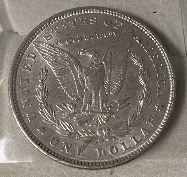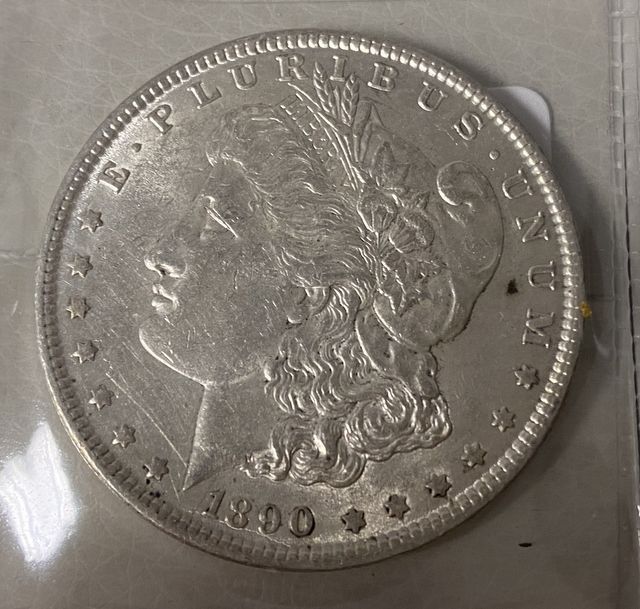 1890 Morgan Silver Dollar XF, Philadelphia, plastic case. 1890 Morgan Silver Dollar XF, Philadelphia, plastic case.