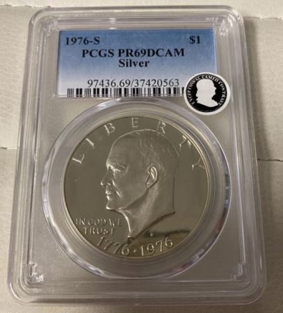 1976-S 1776-1976 Eisenhower Dollar, PCGS PR69DCAM, Silver. 1976-S 1776-1976 Eisenhower Dollar, PCGS PR69DCAM, Silver.