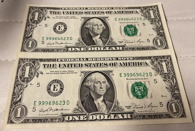 Two Attached 1981 $1 Notes, new condition. Two Attached 1981 $1 Notes, new condition.