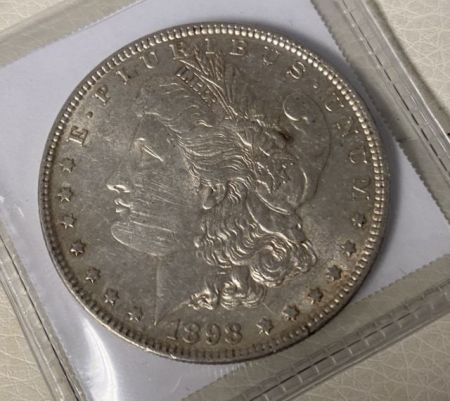 1898 Morgan Silver Dollar XF, Philadelphia, plastic case. 1898 Morgan Silver Dollar XF, Philadelphia, plastic case.