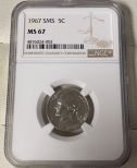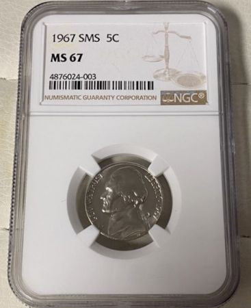 1967 SMS Jefferson Nickel, NGC MS67 1967 SMS Jefferson Nickel, NGC MS67