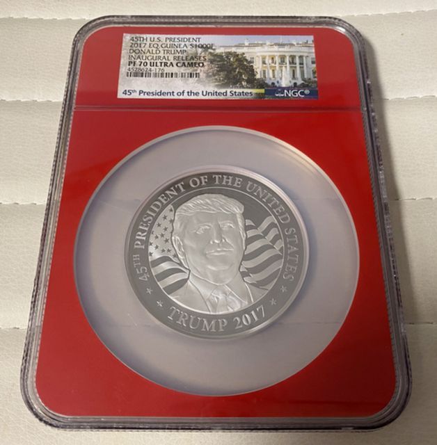 45th U.S. President 2017 EQ Guinea Donald Trump, S100E, Inaugural Releases PF 70 Ultra Cameo, 45th President, NGC. 45th U.S. President 2017 EQ Guinea Donald Trump, S100E, Inaugural Releases PF 70 Ultra Cameo, 45th President, NGC.