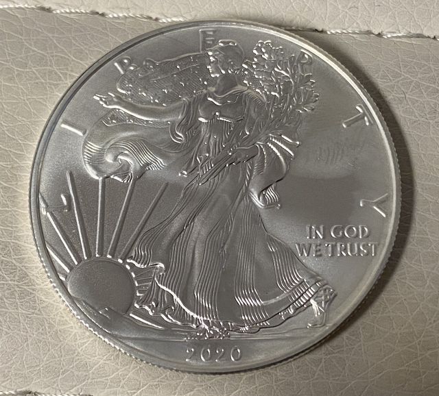2020 American Silver Eagle, one dollar, 1 oz. fine silver, bullion. 2020 American Silver Eagle, one dollar, 1 oz. fine silver, bullion.