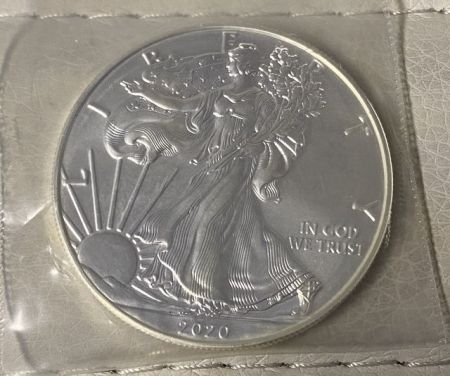 2020 American Silver Eagle, one dollar, 1 oz. fine silver, bullion. 2020 American Silver Eagle, one dollar, 1 oz. fine silver, bullion.