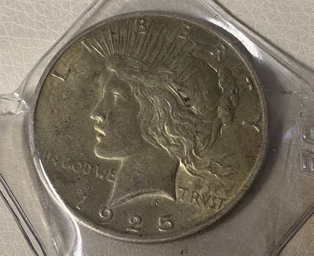 1925 Peace Liberty Coin, one dollar, silver, VG. 1925 Peace Liberty Coin, one dollar, silver, VG.