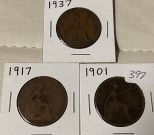 Three Great Britian Coins, 1901, 1917, 1937. Three Great Britian Coins, 1901, 1917, 1937.
