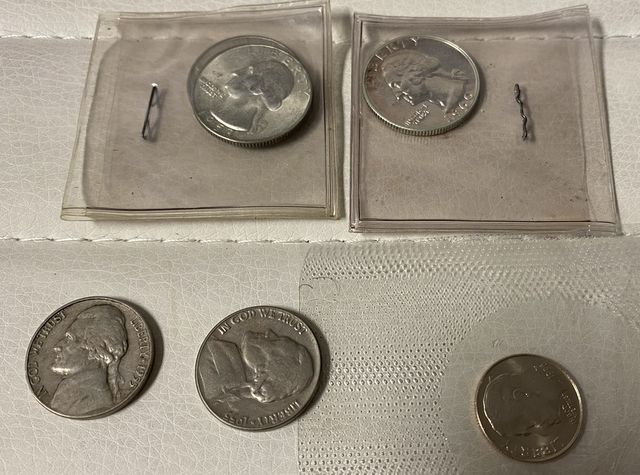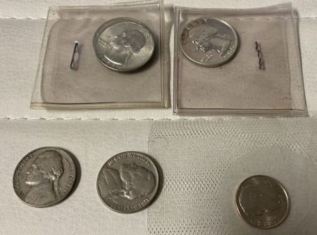 1960 quater, 2-1953 quarters, 1996 W dime, 1950D nickels 1960 quater, 2-1953 quarters, 1996 W dime, 1950D nickels