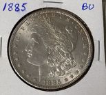 1885 Morgan Silver Dollar, Philadelphia, BU, paper case. 1885 Morgan Silver Dollar, Philadelphia, BU, paper case.
