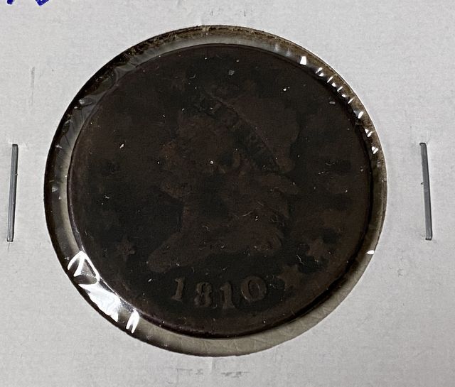 1810 Large Cent, worn condition, paper case. 1810 Large Cent, worn condition, paper case.