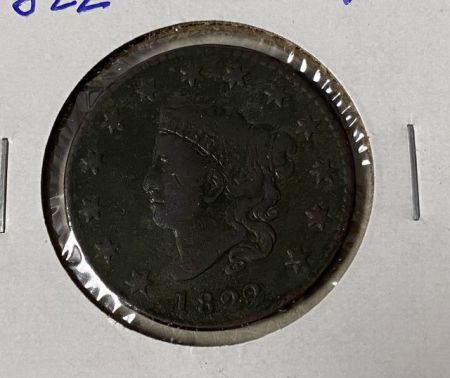 1822 Large Cent, VG, paper case. 1822 Large Cent, VG, paper case.