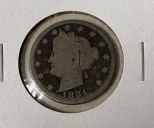 1884 Liberty "V" Nickel, worn condition, paper case. 1884 Liberty "V" Nickel, worn condition, paper case.