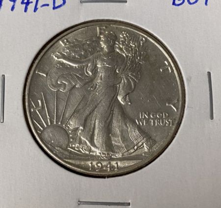 1941-D Walking Liberty Half, brilliant uncirculated MS63 condition, paper case. 1941-D Walking Liberty Half, brilliant uncirculated MS63 condition, paper case.