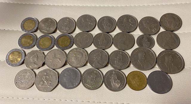 Group of European Currency Coins, English, Italian, assorted styles. Group of European Currency Coins, English, Italian, assorted styles.