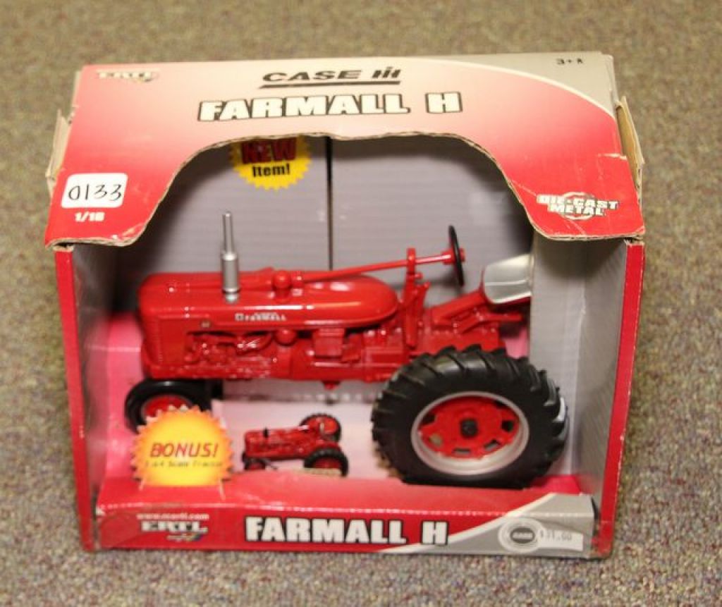 red;8"l 4"h;includes mini tractor;die-cast metal; in original box red;8"l 4"h;includes mini tractor;die-cast metal; in original box