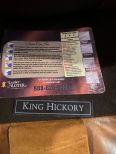 King Hickory Living Room Hamilton Recliner, brown leather, button tufted, light usage wear. King Hickory Living Room Hamilton Recliner, brown leather, button tufted, light usage wear.