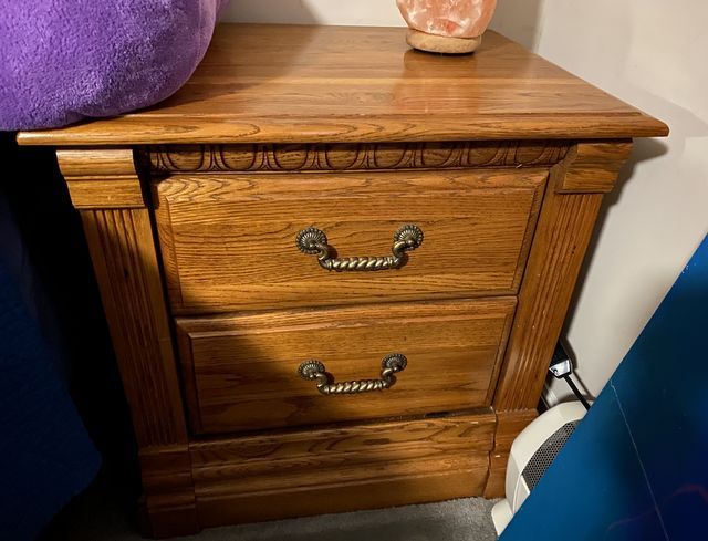 Modern Oak Night Stand, two drawers, good condition. Modern Oak Night Stand, two drawers, good condition.