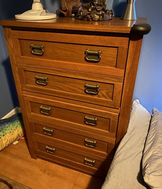 Broyhill Oak Chest of Drawers, five drawers, good condition. Broyhill Oak Chest of Drawers, five drawers, good condition.