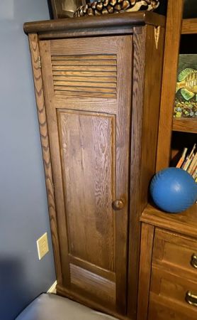 Lexington Co. Oak Single Door Cabinet, part of a set, shelves interior, light wear. Lexington Co. Oak Single Door Cabinet, part of a set, shelves interior, light wear.