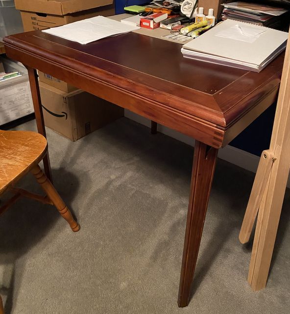 Cherry Fold Up game table, light wear, dove tailed corners. Cherry Fold Up game table, light wear, dove tailed corners.