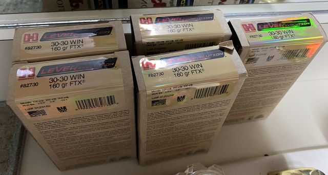 5 Hornady Leverevolution 30-30 Ammo, 160 grain FTX, 20 rounds each. 5 Hornady Leverevolution 30-30 Ammo, 160 grain FTX, 20 rounds each.