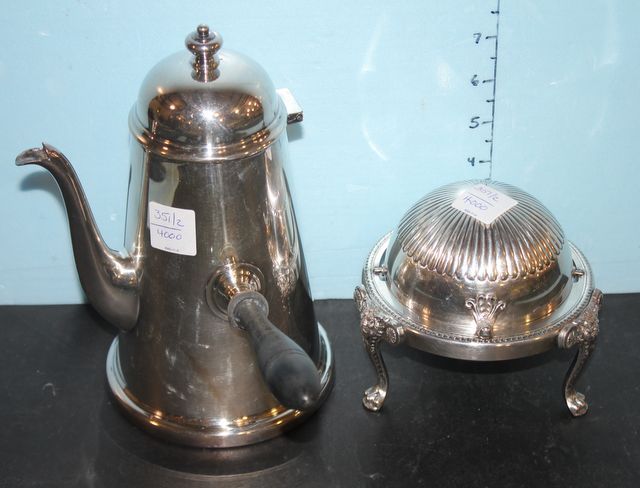 351 Silverplate, Wood Handle Teapot and Small Warmer
