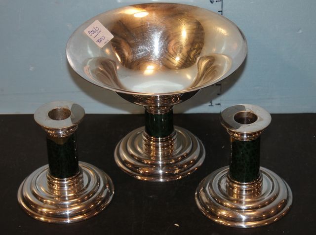 356 Puiforcat French Deco Silver Candlesticks and Compote