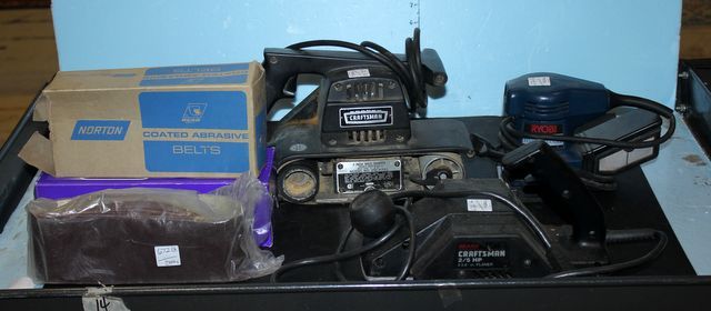 672 Two Craftsman Belt Sanders, Ryobi Palm Sander, and Sanding Belts