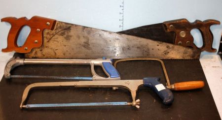 Two Hand Saws, Two Hacksaws, and Coping Saw Two Hand Saws, Two Hacksaws, and Coping Saw