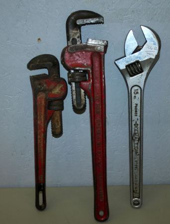 Three Wrenches 15" adjustable ; 16" pipe, 18" pipe Three Wrenches 15" adjustable ; 16" pipe, 18" pipe