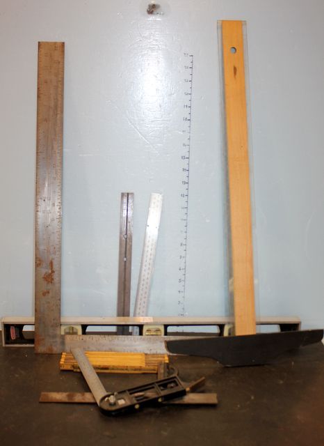 Square, Folding Tape Measurer, Rulers, and Level Square, Folding Tape Measurer, Rulers, and Level