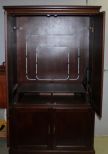 Mahogany Four Door Entertainment Cabinet 45" w., 80" h., 25" dia. Mahogany Four Door Entertainment Cabinet 45" w., 80" h., 25" dia.