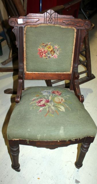 832 Walnut Victorian Needlepoint Parlor Chair 34" h.