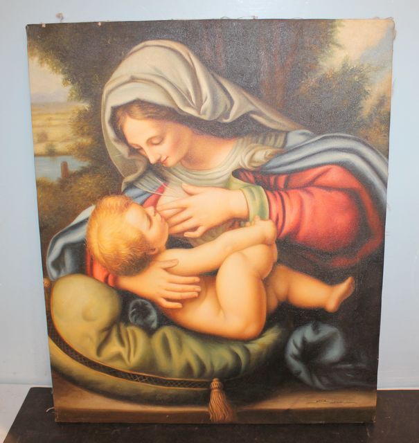 Oil on Canvas of Madonna and Child, Signed 20" w., 24" h. Oil on Canvas of Madonna and Child, Signed 20" w., 24" h.