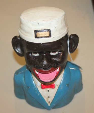 Reproduction Cast Iron Jolly Boy Bank 7" h. Reproduction Cast Iron Jolly Boy Bank 7" h.