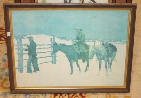 Cowboys in Winter Oil on Canvas Signed Frederic Remington 32" w., 23 1/2" h. Cowboys in Winter Oil on Canvas Signed Frederic Remington 32" w., 23 1/2" h.