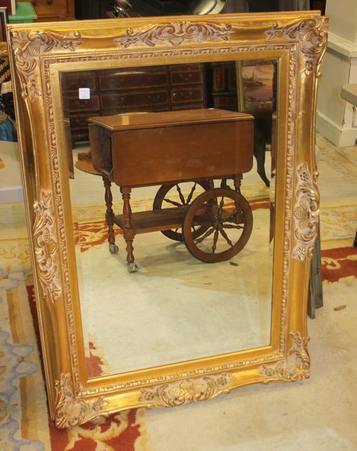 908 Beveled Mirror in Gold Frame 33 1/2" w, 45" h.
