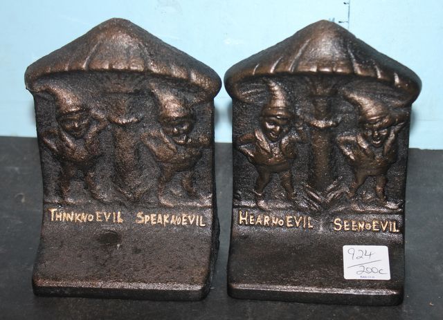 924 Reproduction Cast Iron Hear No Evil, See No Evil Bookends 6" h.